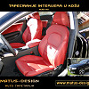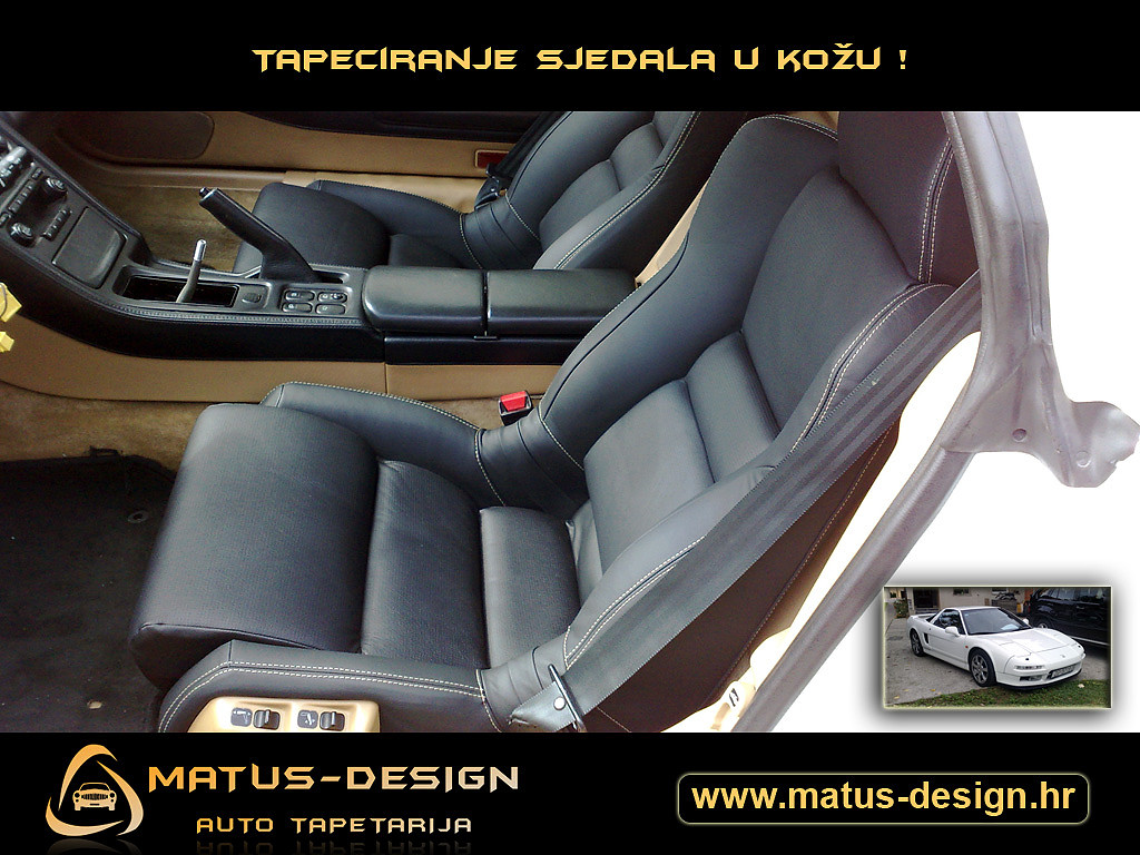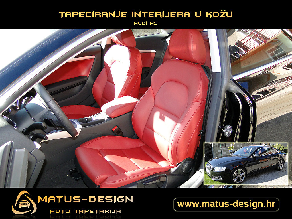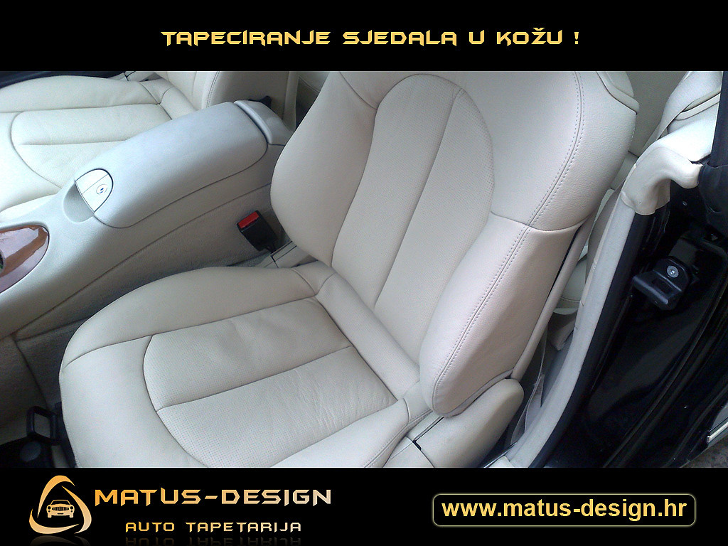 Zato mi preporučivamo tapeciranje vaših sjedala u kombinaciju kože i alkantara. U ovom slučaju tapeciranja sjedala kombinacijom, bočni dijelovi sjedala tapeciraju se kožom, a središnji dio alkantarom. Tako dobivate ekskluzivan izgled, udobno sjedalo i ljeti i zimi bez grijača sjedala ili ventilirajučih sistema ispod tapecirunga. Nakon pretrapeciravanja sjedala i ostalog interijera u kožu vaše vozilo dobiva novu dimenziju exkluzivnosti i prestiža, evo i nekih primjera naših radova (komplet kožna unutrašnjost):