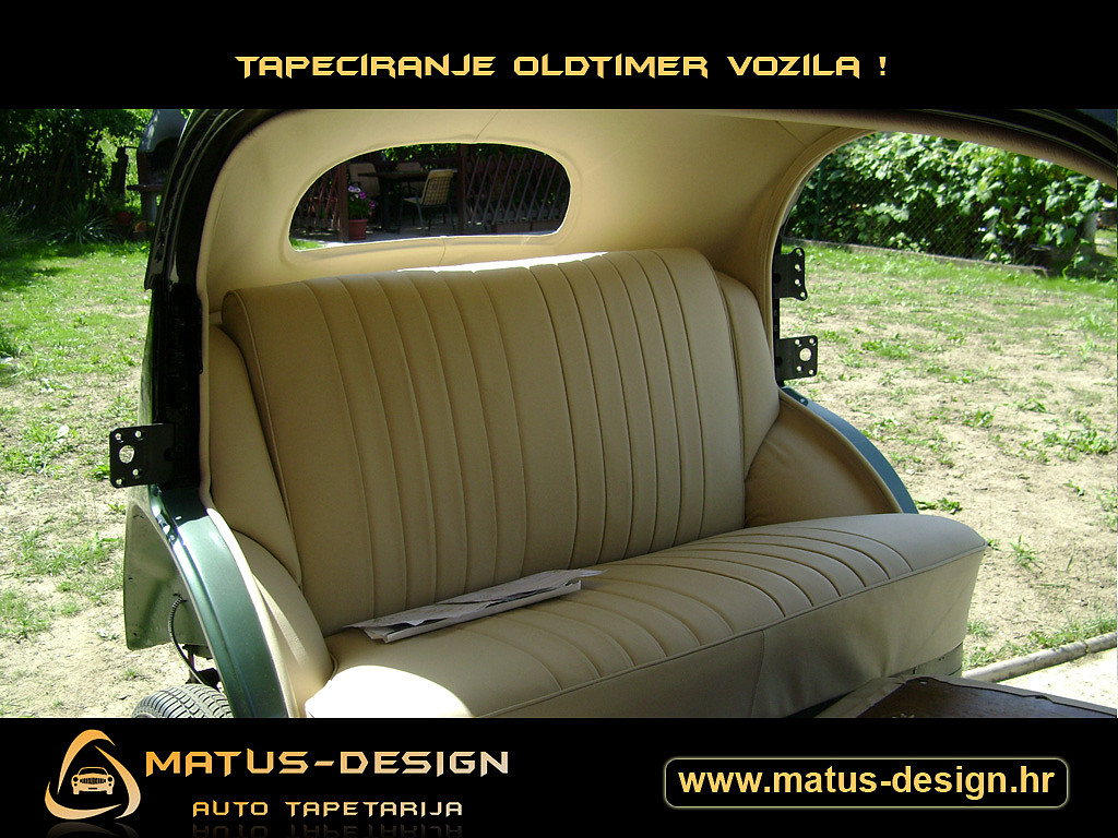 Želite li i vi svoje vozilo pretvoriti u turističku atrakciju, ili možda jednostavno iz svog gušta unutrašnjost svog limenog ljubimca učiniti savršenom, obratite se s povjerenjem nama. Mi nudimo našim klijentima prvoklasnu restauraciju interijera oldtimer vozila (tapetarski dio). Od iskrivljenih i oštečenih tapecirunga vrata do propalih sjedala, naši majstori vračaju orginalni izgled vašem OLDTIMER vozilu.
